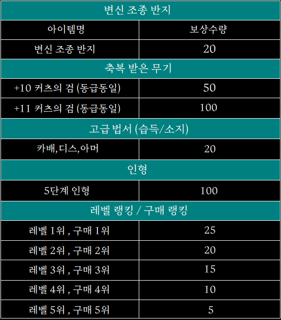 아데나게시판 구매랭킹의 의한 자동지급 아이템